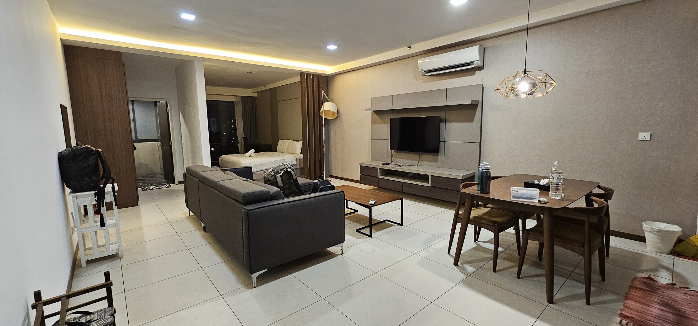 Vaikka kentällä alkoi jo väsymys painaa (olimme mm. viimeiset sähköisten maahantulokorttien täyttäjät, kun reppumiehen iPhone temppuili netin kanssa), niin mieliala kohosi kummasti, kun saimme kuskiksi todella mukavan ja hyvää englantia puhuvan herran. Nämä oma-aloitteisesti kaupunkia esittelevät, huumorintajuiset kuljettajat ovat kyllä ihan parhaita kaupunki- ja maakuvan luojia ja ensivaikutelman tekijöitä. Pääsimme hyvin ensimmäiseen Penangin osoitteeseemme, mutta emme vielä sisälle huoneistoon. Oli sunnuntai-ilta ja Agodan kautta varatusta huoneistosta ei ollut tullut tarkempia sisäänkirjautumisohjeita vielä siihenkään mennessä, kun olimme iltapäivällä paikan päällä. Kyseessä oli iso rakennuskompleksi, jossa suurin osa taisi olla asuinhuoneistoja. Näimme vartijan, joka ohjasi meidät lasiovisen toimiston luokse. Sisällä oli nainen, joka kertoi, että olemme väärässä paikassa ja kyseessä oli jonkinlainen business-office. Koska paikalla ei ollut muita jäimme kuitenkin siihen selvittelemään varauksen tietoja. Emme tavoittaneet ketään mistään; emme Agodalta emmekä itse vuokraajaa. Lopulta soittaen pääsimme läpi, mutta vastapuolen englannin aksentti oli niin voimakasta ja taustamelu niin kova, etten saanut mitään selvää. Jokainen kontakti johti johonkin uuteen yhteydenottoon. Toimiston nainen oli avulias ja auttoi puheluiden tulkkaamisen kanssa, sekä lopulta myös sai yhteyden rakennuksessa olevaan toimistoon, joka ei tietenkään sunnuntaisin ole auki. Tähän kaikkeen meni yli tunti, kunnes saimme ohjeet ja numerosarjan, jolla hakea postilokerosta huoneiston avain. Emme mitenkään olisi saanet ilman tätä paikallisapua tilannetta selvitettyä ja harmi etten tullut tarkistaneeksi hänen nimeään. Koska rahaa hän ei avustaan huolinut, veimme lähtöpäivänä suklaarasian kiitokseksi.
