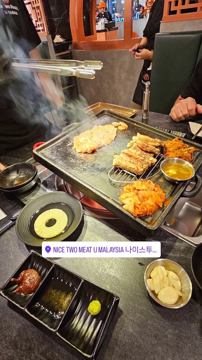 Ilta oli jo pitkällä ja vielä piti etsiä jostakin ruokaa. Kulman takaa löytyikin korealainen ravintola, mikä nosti tunnelmaa sekä ravintolan äänitason (kovaäänistä nuorisoa ja musiikkia) että pöydässä valmistettavien ruokien muodossa.