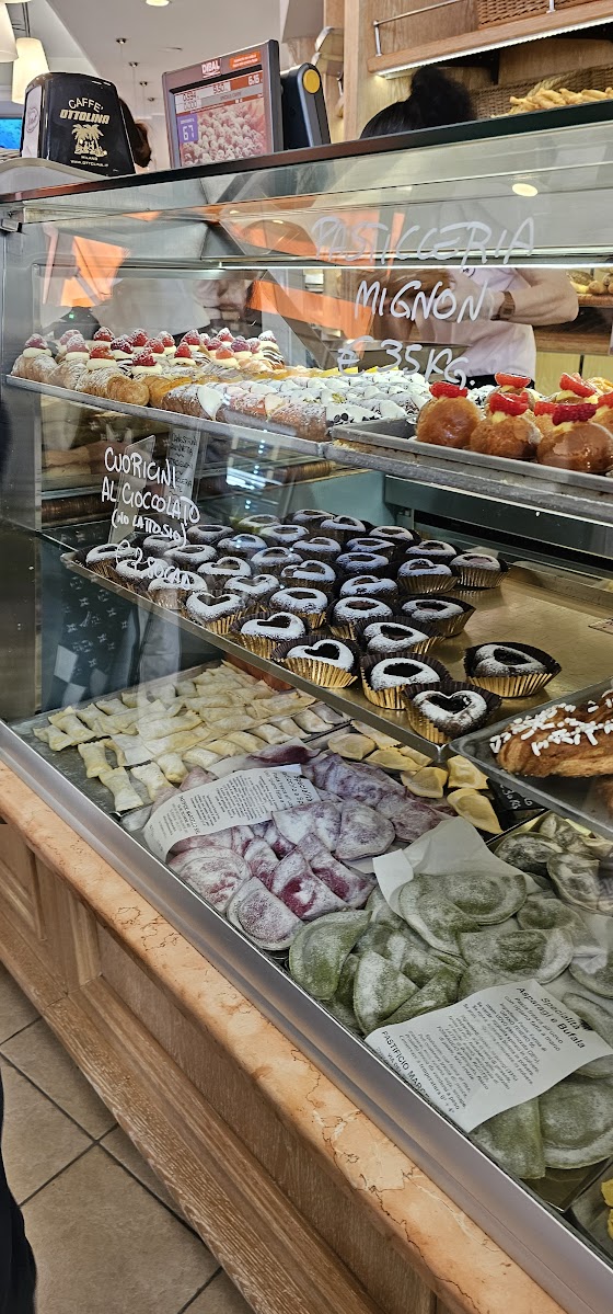 Lopuksi herkullinen kahvilavinkki Milanoon. Via Giovanni Ombonilla, jossa meillä oli Airbnb-majoitus, oli loistava kahvila-leipomo Pasticceria Bottarelli. Laaja valikoima suolaisia ja makeita leivonnaisia ja tuorepuristettua appelsiinimehua. Kävimme ensimmäisenä päivänä vain nopeasti istahtamassa pitkän kävelyn jälkeen, mutta saimme juomien lisäksi eteemme sipsejä, pizzapaloja ymv. sellaisen määrän ettei nälkä tullut hetkeen. Toki tämä italialainen aperitiivokulttuuri tuli myöhemmin kovinkin tutuksi, mutta kahvilassa en olisi odottanut moista. Aamupäivällä paikka oli ruuhkaksi asti täynnä paikallisia kahvin ja croissantin ostajia ja aamiaispaikaksi erityisesti voikin tätä suositella, koska niitä suomalaiseen makuun sopivia suolaisia vaihtoehtoja ei niin kovin helposti löydy kahviloistakaan. Ihania olivat myös koiravieraat, joita todella monella oli mukanaan – myös yksi mäykky 😊