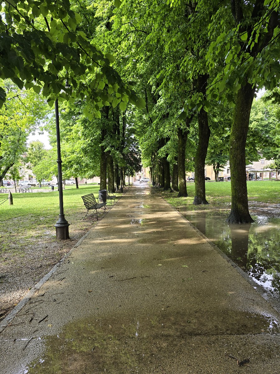 Nämä olivat viimeiset kohteemme tällä automatkalla. Firenzestä lähdettyämme poikkesimme outlet-kylään matkalla Bolognan suuntaan. Kovin oli hiljaista emmekä löytäneet mitään ostettavaa. Puolivahingossa päädyimme Enzo Ferrari -museoon Modenassa. Pitihän sitä käydä katsomassa ja syömässä lounas, mutta siihen se jäikin. Museo näytti lopulta aika pieneltä ja kalliilta kuten kaikki muukin. Ajelimme Modenasta Bergamon suuntaan ja matkalle osui sekä auringonpaistetta että rankkoja sadekuuroja.