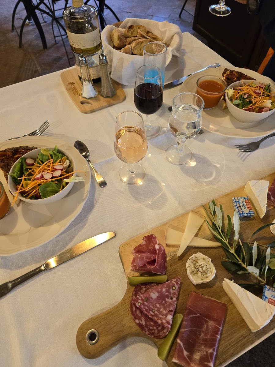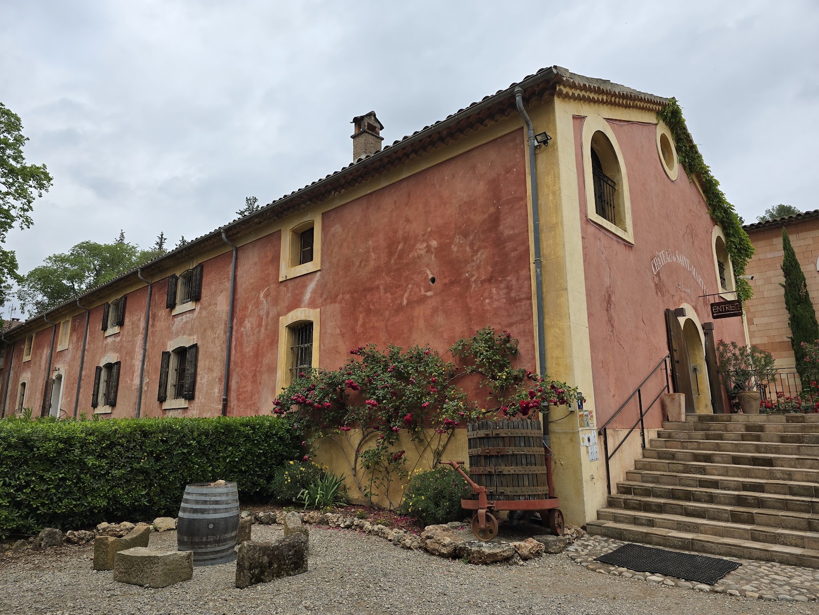 Meitä odotti vierailu viinitilalla. Kun kerran Ranskaan tultiin, halusin yhden majoituksen olevan viinitilalla ja sellainen löytyi noin puolentoista tunnin ajomatkan päästä Gréoux-les-Bainsista koilliseen. Viinitilamajoituksen löytyminen ei ollut aivan helppoa, vaikka toisin voisi luulla. En muista enää sivustoa, josta tämän Château de Saint-Martinin poimin, mutta paikka oli kaikin puolin viihtyisä. Ainut miinus siitä, että tilalla ei ollut ravintolaa kuin tilauskäytössä, joten syömään piti lähteä ns. kylille. Juotavien kanssa ei toki ollut ongelmaa 😊